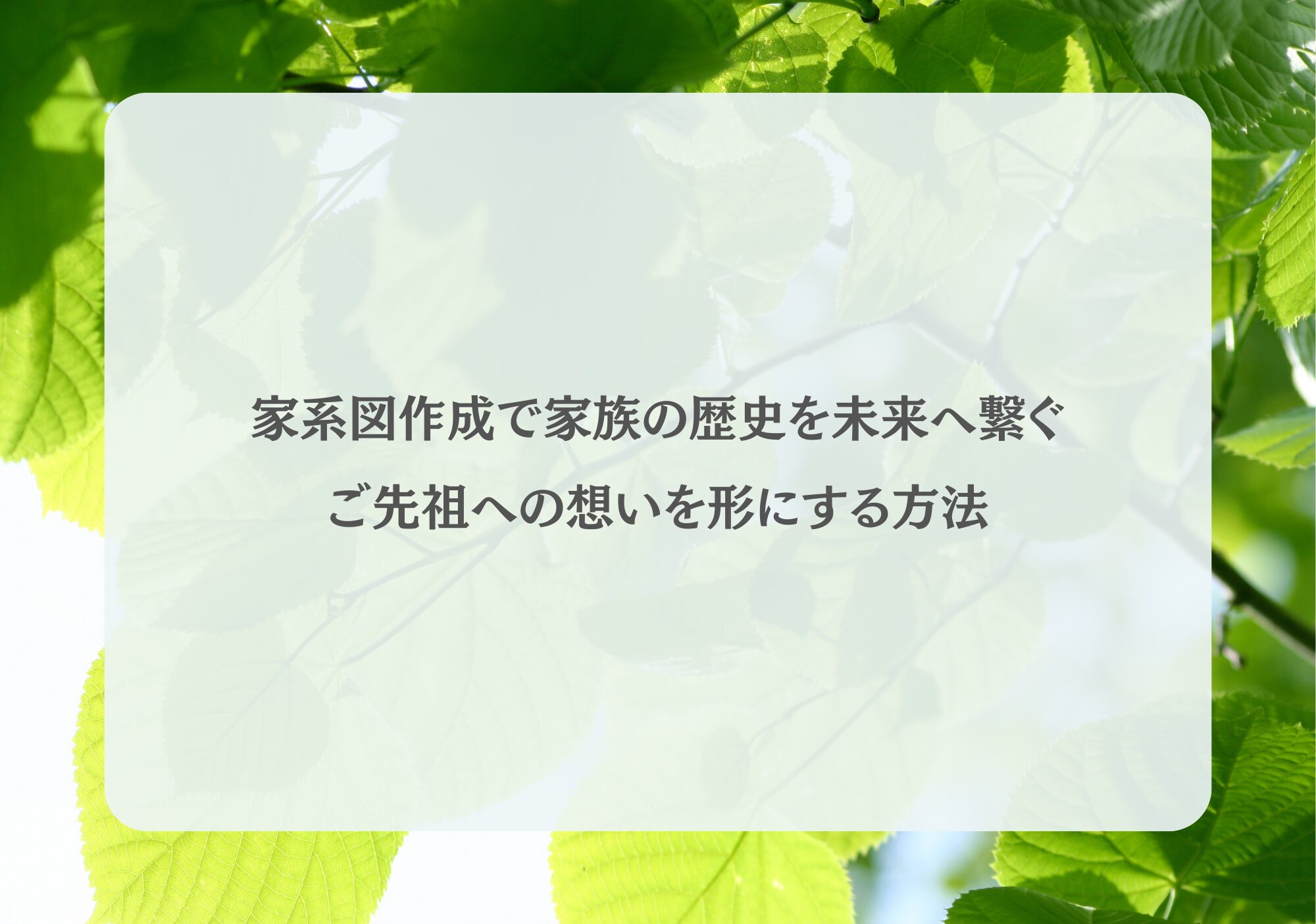 家系図は、単なる情報の整理や記録ではありません。ご先祖への敬意と家族への想いを形にするもの。だからこそ、作り手の価値観や姿勢が、完成した家系図の満足度に大きく影響いたします。費用の安さだけで選ぶのではなく、「この人に頼みたい」という気持ちを大切にすることで、家系図が単なる記録ではなく「心の財産」となっていくのです。